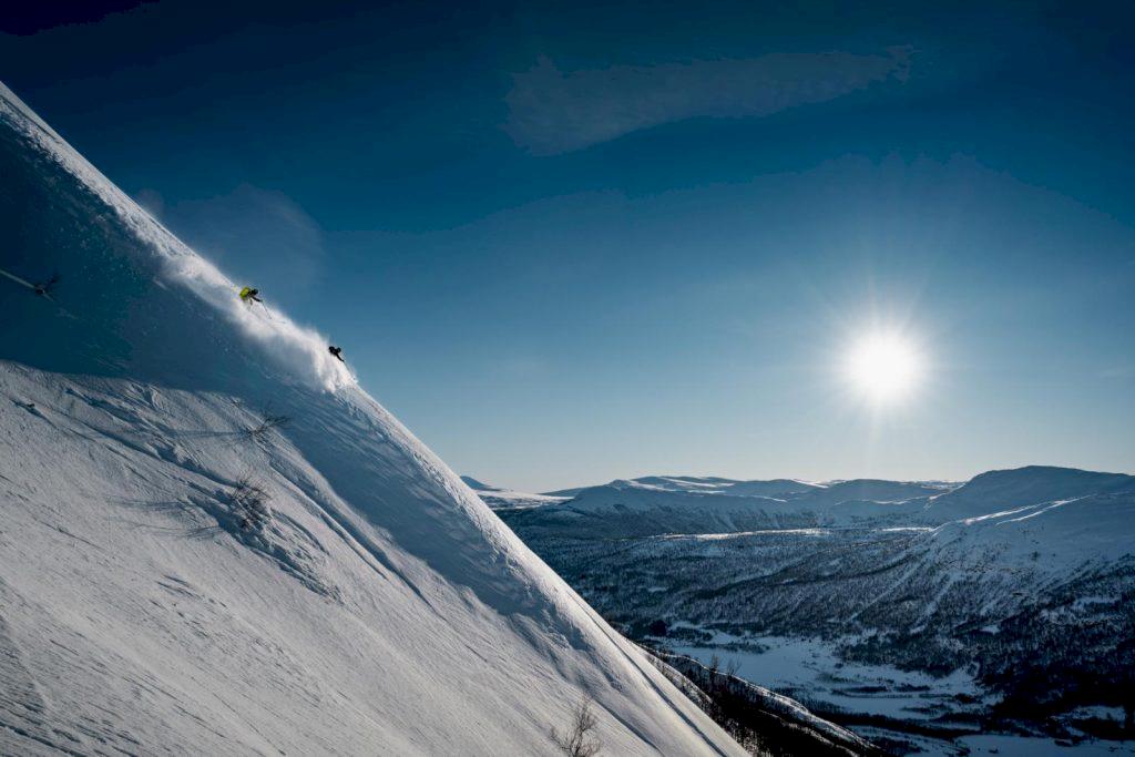 Från toppen av Bjørnskartindan bär det av ner mot Langsundet i resans sista åk. Svängar som sitter kvar långt efter att skidorna packats ner.