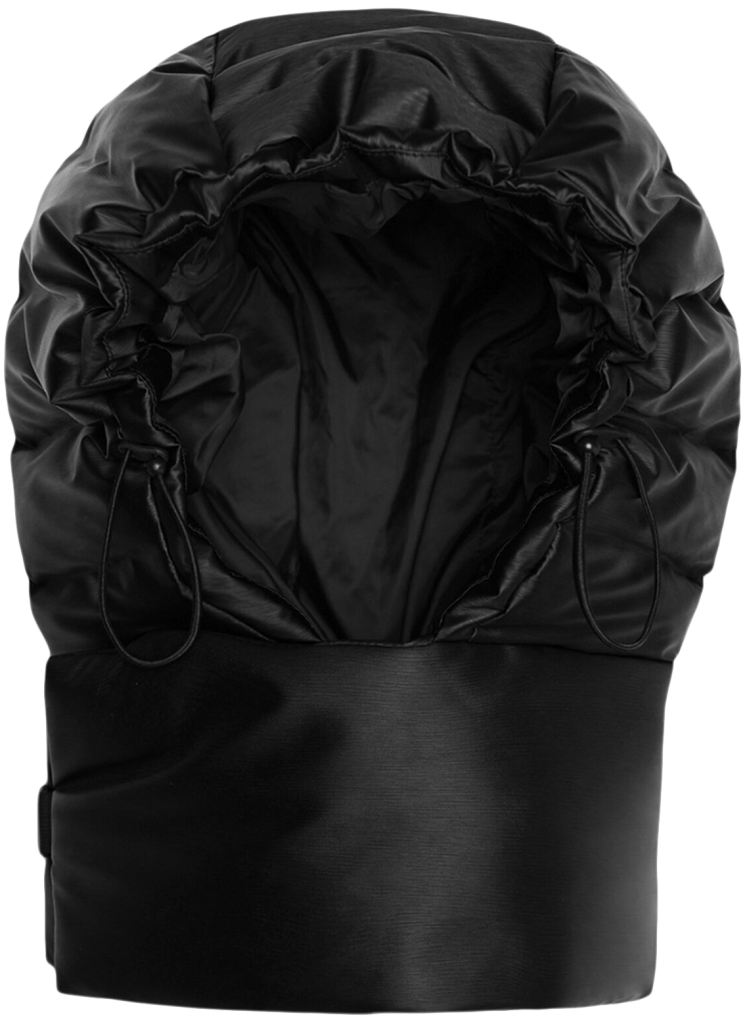 Varm mössa med dunfyllning, mjukt och fukttransporterande innertyg och öronlappar som kan spännas under hakan.
