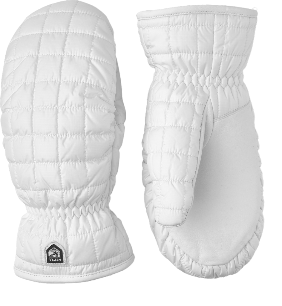 Ovansidan är sydd i polyamidväv med quiltad design, medan innerhanden är i följsam lammnappa som ger bra grepp runt stavarna.