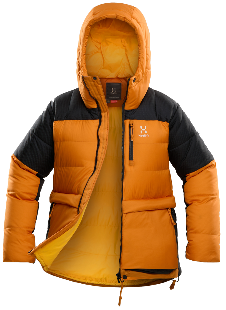 Vind- och vattenavvisande, fillpower 750 (certifierat dun) och svinvarm både på expeditionen och den svinkallaste januarimorgonen i Åre.