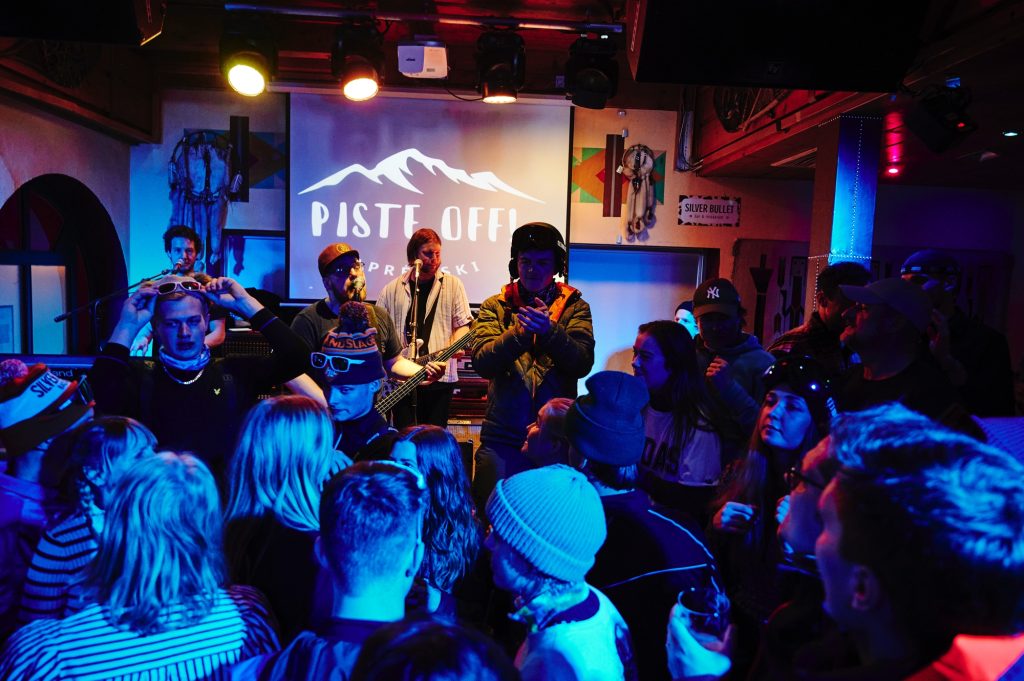 Utspilld öl klibbar under våra skosulor, och lokalen är proppfull med unga skidåkare: mest svenskar, men också tyskar, österrikare och danskar.