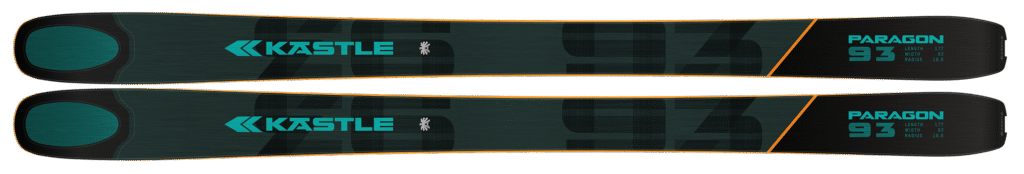 Kästles svar på allmountainskida heter Paragon 93, och är en skida som är tydligt fokuserad på pisten. Det märks framförallt i bakdelen av skidan, som trots lite rocker gärna sitter fast i backen. Det är riktigt bra när du åker skärande sväng i backen, men gör att det blir klart svårare om du vill sladda i mjuk snö – speciellt mjuk snö som inte är lätt puder. Tailen kan fastna lite och då kan det kännas lite som att skidan skenar om du inte är beredd. Däremot är det otroligt enkelt i pisten, oavsett hur pisten ser ut. Det är en ganska lätt skida, men det beter sig som att den vore tyngre. Styr bra och går som tåget på skär. Den blir lite instabil och osäker om du försöker dig på något annat än skärande svängar. Lite paradoxalt är den samtidigt enkel att få runt i låg fart och om du av någon anledning skulle vilja köra hoppsvängar. Paragon är en kul skida i rätt typ av sväng, och för många klart tillräcklig för att köra hur hårt som helst.