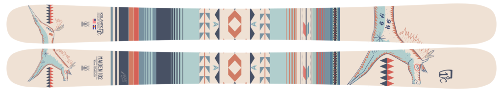 Maiden är en »damserie« från Icelantic. Som alltid hos oss är alla skidor testade av åkare jämnt representerade ur könspektrat. Maiden är en relativt mjuk, pigg och fantastiskt skoj skida. Den är riktigt snabb från kant till kant. Radien är lite kortare och de är snabba även i svängarna. Däremot är trycker den inte ut dig i slutet av svängarna, så den schwungen som kanske förväntas uteblir. Men lekfullt är det, skidan vill verkligen att du ska hoppa och skutta – gärna åt alla möjliga håll. Twintip gör att en parkkänsla ligger nära till hands också. Trots det håller den sig på mattan om du får för dig att åka rätt ned en bit. Maiden är välbalanserad. Teståkarna ville mest åka skog och slask med den, men den går att ta ut i större terräng också. Där är den något mer begränsande, men det funkar absolut. Hårt underlag kan gå, men det är svårare. Eftersom den är så kvick kan det hända att den är lite för överambitiös i pisten. Konsekvensen blir att den inte klarar hålla kanten helt, eller att du inte hänger med.